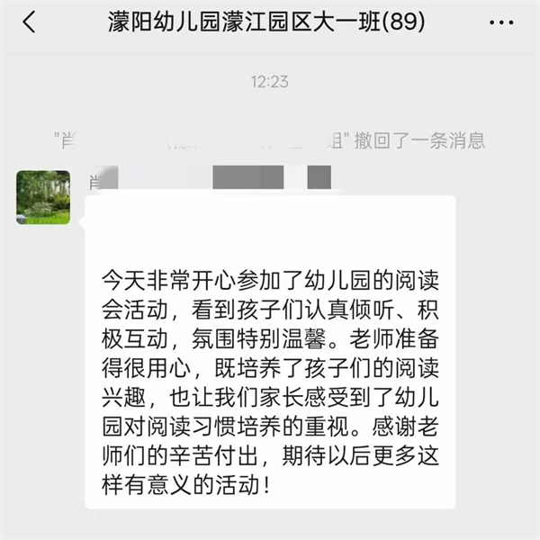家长代表杨萍带来《亲子共读:从“有书可读”到“有爱相伴”》的分享,朴实的话语里满是陪伴的温暖与感动。