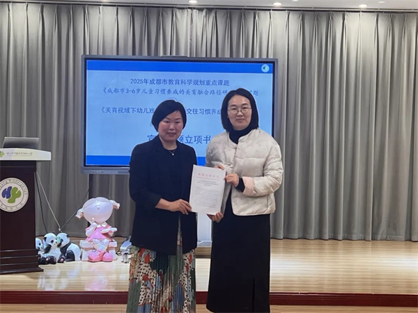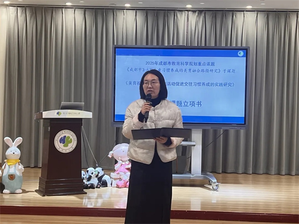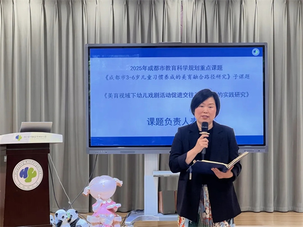 2026年4月8日上午,四川天府新区华阳幼儿园举行了成都市教育局学前教育处重点课题子课题《美育视域下幼儿戏剧活动促进交往习惯养成的实践研究》开题论证会。此次活动特邀成都大学副教授、四川天府新区教育科学研究院专家全程指导,华阳幼儿园行政管理人员、全体主研人员及部分参研教师共同参与。 首先,由成都大学师范学院副教授范小梅宣读课题立项书,正式拉开本次课题论证序幕。