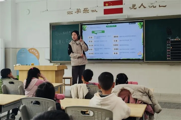 当草木新绿邂逅童年纯真,成都市龙江路小学双流分校的每一寸土地,都藏着护绿诚意与育人温情。这个植树节,学校以“与小树共成长 让童心向绿意”为主题,开展植绿、护绿、悟绿系列活动,蓝花楹抽芽、紫藤吐芳、桃李绽蕊,龙娃娃们循着春光,赴一场与小树并肩的植绿之约,让童心与绿意紧紧相拥。 启智 德育大课上,老师用充满童趣的语言讲解植树节由来和树木养护小知识,并通过互动问答引导龙娃娃们畅谈护绿想法。互动问答间,爱绿护绿的种子悄然在孩子们心中扎根,让环保启蒙充满温度。