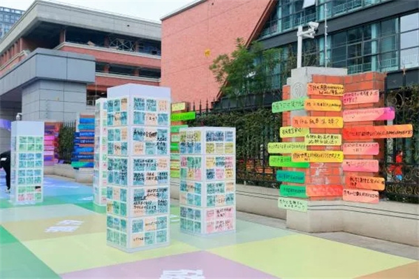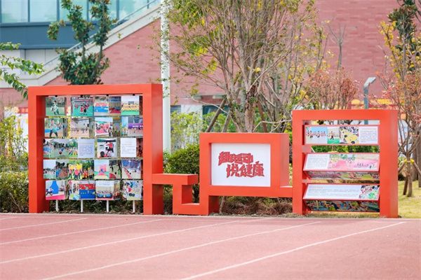 浓厚文化 学校注重校园文化的打造,通过反复推敲、打磨细节设计,将办学理念和课程建设相结合,营造浓厚的文化氛围。校园整体色调以传统国潮色为主,彰显中国文化之美,同时融入“融合育人”思想,打造劳动教育、艺术之美等特色空间。
