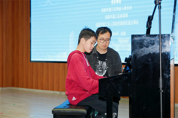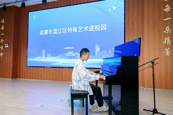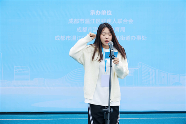 活动现场,由温江区残疾人组成的艺术团还带来了艺术表演,为激情赛场增添了温柔的艺术色彩。