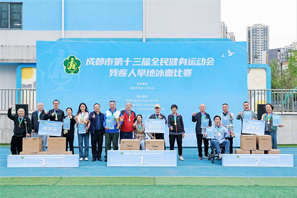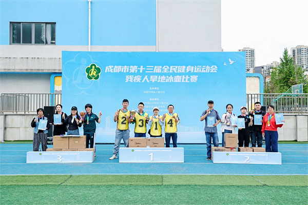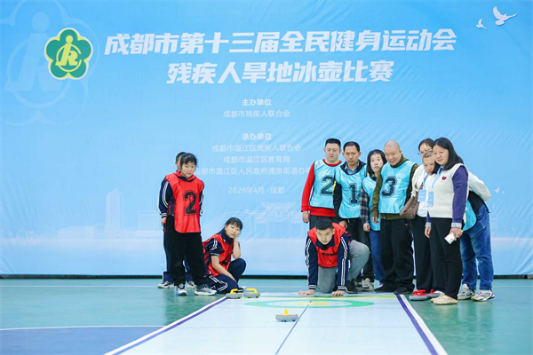 为深入推进全民健身与残疾人体育融合发展,丰富残疾人文体生活,2026年4月21日,由成都市残疾人联合会主办,成都市温江区残疾人联合会、成都市温江区教育局、成都市温江区涌泉街道办事处承办的成都市第十三届全民健身运动会残疾人旱地冰壶比赛在成都市温江区特殊教育学校成功举办。成都市残疾人联合会党组成员、副理事长赵小明,温江区人民政府副区长张轶,温江区残疾人联合会理事长蔡玖华,成都市温江区特殊教育学校党支部书记、校长陈勇出席开赛仪式。