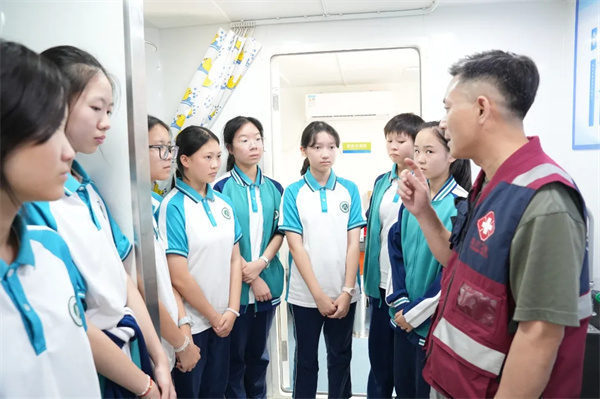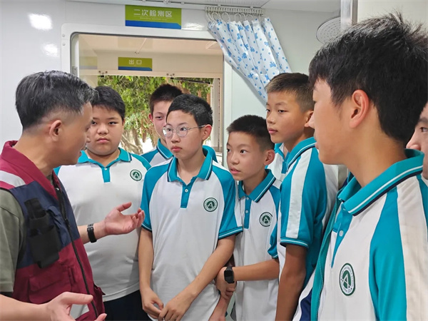 9月25日,四川省成都市新都四中师生齐聚一堂,共同参与了“核医未来,向‘新’而行”四川省青少年核医学科普教育培训活动。四川核与辐射医学救援队携手成都医学院带领学校师生共同走进了这场科学与人文交织的探索之旅,见证了学生们从“闻核色变”到“知核善用”的思想蜕变。 “核”你初见:从陌生到熟悉 活动伊始,四川核与辐射医学救援队的林元杰老师以一句“同学们,你认识‘核’吗?”拉开与“核”相遇的序幕。学生们纷纷举手,答案从“核磁共振”到“核污染排泄”真实反映出学生们对“核”的初步印象。 当屏幕上出现我国第一颗原子弹爆炸的珍贵影像时,阶梯教室里响起热烈的掌声。林元杰深情讲述“三线建设”背后的家国情怀,强调“我们宁愿备而不用,也不要用而不备”。这一刻,科学知识悄然升华为民族精神的传递。 “核”中有爱:科技温暖人间 在“核仔科普”环节,学生们惊喜地发现“核”不仅能用于安检、肿瘤追踪,还能助力农业育种、环境治理。学生们纷纷感慨道:“核医学的世界竟如此神奇!”他们的眼神中闪烁着求知的光芒,语言表达也愈发流畅准确。 在操场上,也如火如荼地进行着核化洗消车的展演。在工作人员的操作展示下,各个按钮应声启动,显示屏上跳动变换着与“核”相关的种种数据。学生们惊呼:“好酷!”他们通过AR眼镜体验了伤员洗消的全过程、特制溶剂遇“污染源”汽化的神奇瞬间。洗消车里回荡着此起彼伏的掌声。 当林元杰补充提到幽门螺旋杆菌检测也运用了核技术时,有学生脱口而出:“这就是‘小核大用’啊!”在场的师生都自发地为这灵动的表达点赞。 “核”需慎用:敬畏与守护并存 林元杰通过“铱192事件”的真实案例,引导学生思考核技术误用的严重后果。一句“世界上绝不可能有两种药,一种是完全治好核辐射的药,一种是后悔药”,深深触动了在场每一位学生。 在讨论“生活中哪类人群需特别注意核辐射”时,学生们积极发言,最终在林元杰的引导下明确:孕妇与婴幼儿尤为敏感。有学生轻声感叹:“核辐射原来无处不在啊!”这句话折射出他们初步建立起的对科技的辩证认知——既向往其利,也要警惕其害。 “核”你互动:实践出真知 最令学生兴奋的环节,莫过于亲手操作盖革计数器检测辐射。孩子们围拢在仪器旁,眼神专注,动作谨慎,仿佛一个个小科学家。这种体验式的学习,不仅加深了他们对知识的理解,更在潜移默化中培养了观察、记录与表达的能力。 “核”问未来:思考永不止步 最后的提问环节,学生的问题从“我国核发展阶段”到“如何防范核辐射”,甚至延伸到“核武器的阅兵亮相”。这些问题既有广度,也有深度,展现出难得的思辨能力与好奇心。他们正在用语言探索世界,用问题连接未来。 此次核医学科普活动,不仅是一堂科学课,更是一堂生命课、人文课。这场融合物理之精、化学之妙、生物之奇的奇妙之旅,让学生们在认知中建立理性,在体验中萌生敬畏,在交流中锻炼表达。未来已来,向“新”而行。愿这些祖国的未来,既能拥抱科技之光,也能守护人文之温,在核医交汇的星辰大海中,勇敢航行,茁壮成长。 |