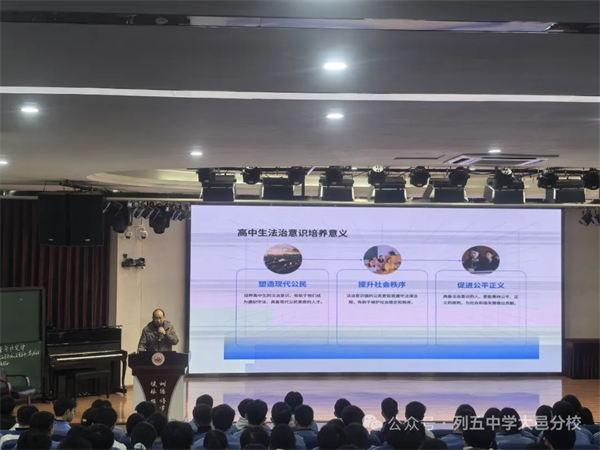 法治教育讲座 12月3日上午,高三年级开展了专题法治教育讲座,为即将迈向成年、面临更多社会交互的同学们,带来了一堂兼具实用性与指导性的“法治必修课”。讲座中,周显洪老师围绕四大核心内容,强调了“法治教育的重要性”,指出法律不仅是社会运行的“红绿灯”,更是保护个人权益的“护身符”。针对高中生群体,周显洪深入解读了“法治意识培养的意义”。在法律知识讲解环节,重点聚焦与学生生活密切相关的法律条文进行讲解,特别是对《民法典》和《刑法》作了详细解读,让同学们明白“年龄”背后的法律意义,深刻认识到“法律红线不可碰”。