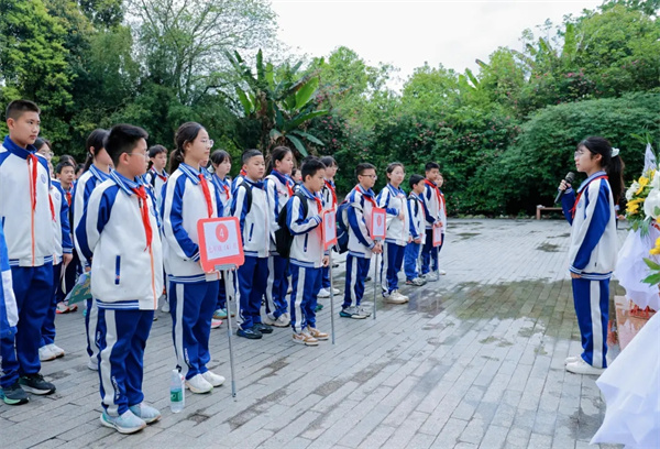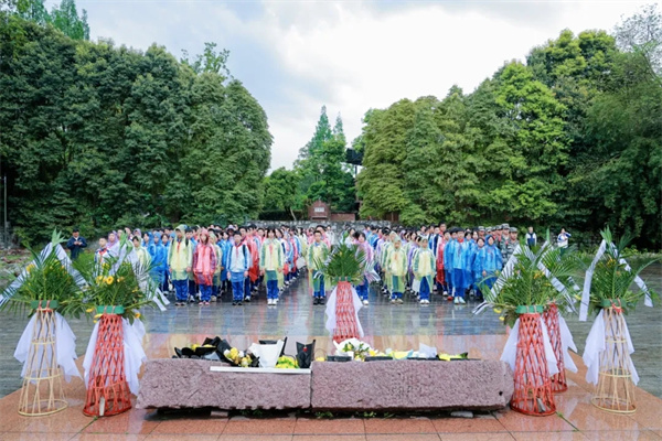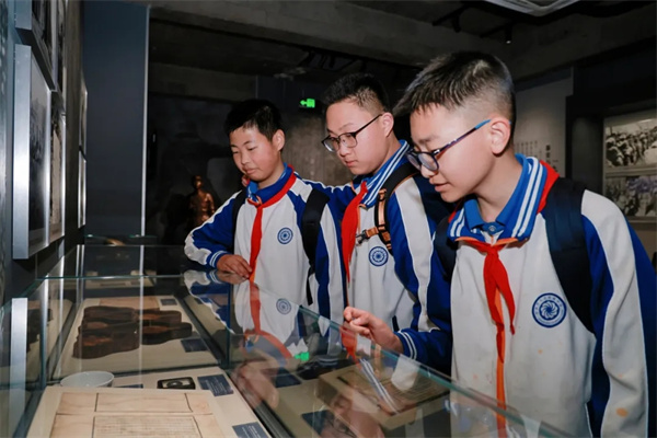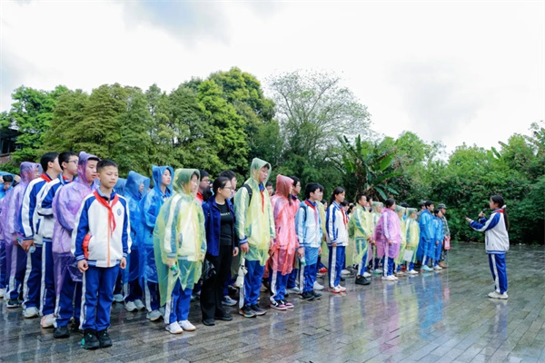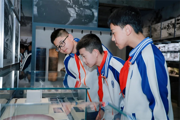 为深入开展爱国主义教育,引导广大青年学子铭记艰苦卓绝的抗战历史、赓续绵延不绝的红色血脉、厚植深沉炽热的家国情怀,近日,成都市双流区九江新城初级中学精心组织全体学生前往建川博物馆聚落,开启了一场沉浸式、感悟式、践行式的红色研学之旅。 同学们漫步于历史展馆之间,聆听岁月深处的英雄回响,在回望峥嵘过往中感悟初心使命,在传承红色精神中勇担时代重任,让青春理想在追光前行的道路上,绽放出最耀眼的奋斗力量! 以礼敬先烈·铸红色信仰 本次红色研学之旅,以一场庄重肃穆的缅怀仪式正式拉开帷幕。清晨的阳光洒在博物馆的纪念广场上,同学们身着整齐校服,神情庄重、心怀敬畏,为革命先烈敬献鲜花,在肃穆的氛围中回望峥嵘岁月。 在肃穆庄严的氛围中,全体同学齐声诵读《少年中国说》,“少年强则国强,少年独立则国独立”的铿锵誓言响彻广场,字字铿锵、句句有力,饱含着新时代少年对祖国的赤诚热爱,也立下了“请党放心,强国有我”的青春誓言。这场仪式不仅是对先烈的缅怀与致敬,更为整场红色研学筑牢了坚不可摧的红色信仰根基。