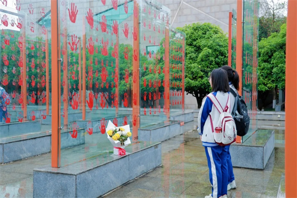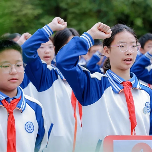 新城学子们驻足凝视、轻触印记,肃立致敬、缅怀先烈。这场零距离的历史教育,让红色精神从文字变为可感可触的温度与力量,激励全体新城学子以英雄为榜样,铭记历史、勇担使命,让英雄精神在青春中代代相传、永放光芒。 以行传精神·承红色基因 参观学习的旅程告一段落,但红色精神的传承从未停止。同学们踊跃发言,畅谈参观过程中的所见所闻、所思所感,讲述抗战英雄的感人故事,分享自己在合力建塔中的协作感悟、在手印广场的心灵触动,畅谈对历史、对家国、对责任、对团结的全新理解。