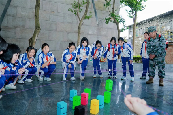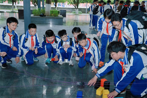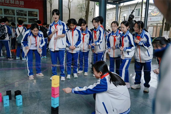 以协作筑塔·凝班级同心 暂别历史展馆的沉浸学习,一场充满活力与温度的“合力建塔”团队拓展活动,成为本次研学途中凝聚班级力量的生动实践课堂。根据研学流程安排,七、八年级各班错峰开展活动,同学们以班级为单位,迅速分工、默契配合,在一次次尝试、调整与互助中,共同搭建起属于班级的“团结高塔”。 有的同学负责精准递接道具,有的同学专注于平稳搭建,有的同学主动统筹协调节奏,大家心往一处想、劲往一处使,在欢声笑语中攻克难关,在协作配合中拉近了彼此的距离,让班级的凝聚力在实践中不断升华。