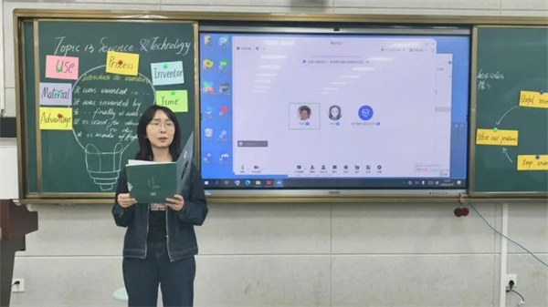 资阳市雁江区幸福博文学校 九年级英语备课组廖春节老师展示了中考复习课《Topic 13 Science and Technology——Reading》示范课,以科技话题为引领、阅读策略为抓手,通过语篇研读与中考真题链接,有效突破科技类阅读理解的重难点,为联盟教师提供了优质的英语复习课范例。 在互动点评环节,教师作为云端学校代表线上发言,结合本校教学实际分享了听课感悟与教学困惑,现场研讨氛围浓厚。