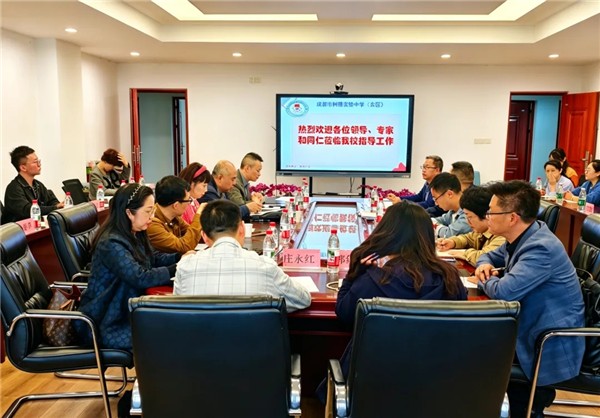 2026年4月22日,为推进青羊区中学教育扩优提质行动和成都市强校工程核心任务,促进义务教育优质均衡发展,青羊区教育局党组成员、区招办主任张勇,中教科科长曾成军、赵雪莲老师,区教育科学研究院副院长张航带领中学各学科教研员及学科中心组成员、骨干教师一行到成都市树德实验中学(东区)进行全面、深入的教育教学视导。本次视导活动由区教科院中学和中职教育研究所副所长刘小平老师主持。 专题汇报展成果 内涵发展显特色 学校分管教学副校长杨大学以《厚植特色强内涵 智慧赋能谱新篇》为题,作教育教学工作专题汇报。他围绕教育教学与管理、课程建设、智慧校园建设与教师队伍建设四个方面,系统阐述了学校的实践路径与发展成果,展现了学校在教育教学改革中的积极探索。