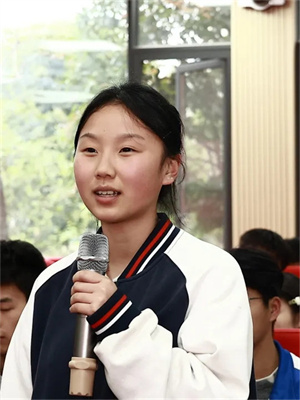 团课伊始,许梦慈以“青春的底色是什么”为切入点,与在场团员展开深度互动。她结合共青团的发展历程,从五四运动中青年先锋的觉醒担当,到新时代青年在科技、教育、公益等领域的奋斗实践,生动诠释了“青年兴则国家兴,青年强则国家强”的深刻内涵。