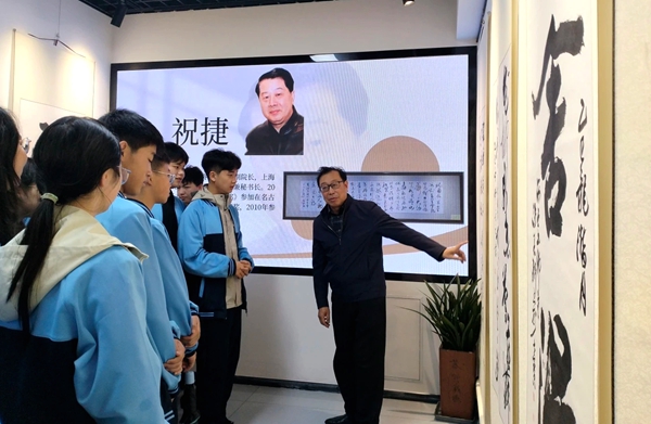 在珍藏馆内,张艺结合馆藏名家书画作品,从书法笔法、绘画意境到作品背后的文化故事,为同学们进行了细致讲解。同学们驻足观赏、认真聆听,从“剑胆琴心”“厚德载物”等经典作品中,感受笔墨丹青的艺术魅力与传统文化的深厚底蕴,进一步厚植了文化自信。