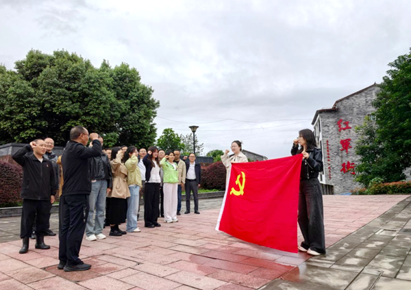 随后,全体党员缓步登上被雨水洗涤一新的118级“战斗梯”。这118级台阶,象征着红军在渠县战斗与生活的118个日夜。步步台阶,如史如鉴,引人深思。在松柏掩映的营渠战役纪念碑前,同志们静默肃立,认真品读李先念同志题写的碑文,从中汲取信念的力量与奋斗的启示。 活动尾声,全体党员在纪念碑前整齐列队,面向鲜红党旗,高举右拳,重温入党誓词。“我志愿加入中国共产党……”铿锵誓言回荡园中,既是对革命先烈的深切缅怀,更是对“为党育人、为国育才”初心使命的郑重承诺。 此次红色寻根之旅,是一次深刻的历史教育,更是一场触及灵魂的精神淬炼。全体党员纷纷表示,必将把此次活动中汲取的信仰之力、担当之勇,转化为立德树人、潜心教学的实际行动,将红色基因融入课堂教学、沁入学生心田,让革命薪火在新时代教育战线绽放光芒。 |