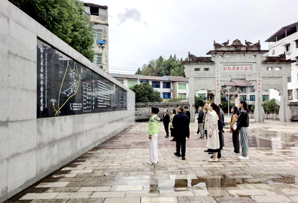 雨后的纪念园更显庄重静谧。全体党员在刻有“斧头劈开新世界,镰刀割断旧乾坤”这一“中国红色第一联”的牌坊前肃立凝望,磅礴的语句瞬间将大家的思绪拉回到那段风起云涌的革命岁月。 在红色渠县纪念馆内,支部成员通过大量珍贵的历史照片、文物与文献资料,系统回顾了营渠战役的壮烈历程,深切感悟徐向前、李先念等革命先辈的英勇事迹与崇高精神。一件件实物、一幕幕复原场景,仿佛无声的讲述者,让那段艰苦卓绝的奋斗史变得可感可触。