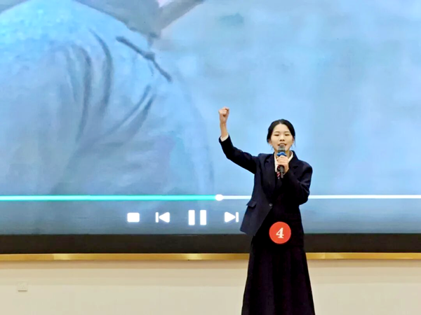 在主持人宣布比赛规则后,选手们按抽签顺序依次登台。他们紧扣主题,或追忆革命先辈的感人事迹,或讴歌家乡与祖国的发展成就,或结合自身成长抒发理想感悟。演讲内容充实、情感真挚,语言流畅且富有感染力,充分表达了对红色精神的深刻理解、对时代责任的清醒认识,以及将个人理想融入国家发展和民族复兴伟业的坚定决心。