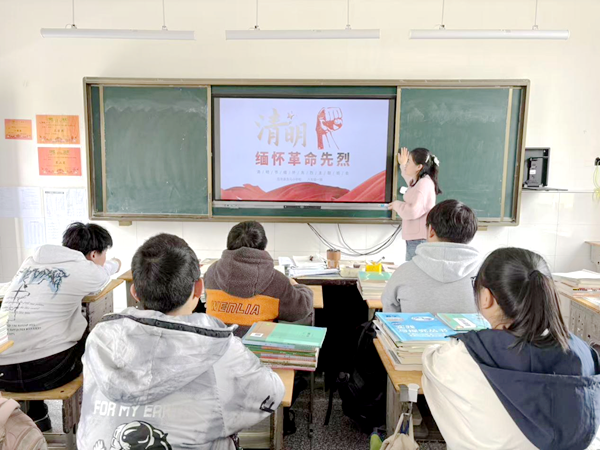 为让追思更有意义,部分班级还开展了“云端祭英烈”、书写清明寄语等活动。同学们通过网络向革命先烈献花、留言,表达深切缅怀;在卡片上写下对先烈的敬意、对先人的思念,以及自己的成长目标,一句句真挚的话语,承载着少年们对英雄的敬仰,也彰显着传承红色基因的决心。班会最后,全体同学肃立,默哀一分钟,以最庄重的方式缅怀先烈,寄托哀思,现场氛围肃穆而庄重。